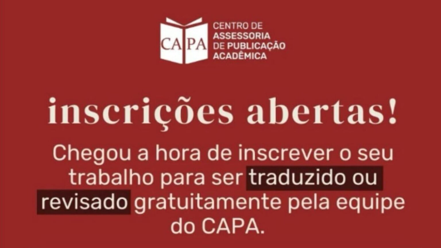 O Centro de Assessoria de Publicação Acadêmica (Capa) da Universidade Federal do Paraná (UFPR) está com edital aberto para tradução para língua inglesa, ou revisão de língua inglesa ou portuguesa. As inscrições já estão abertas e vão até o dia 14 de fevereiro.